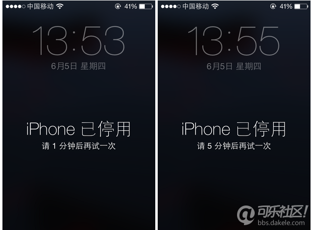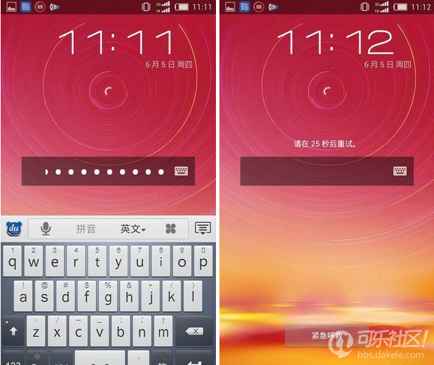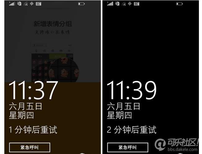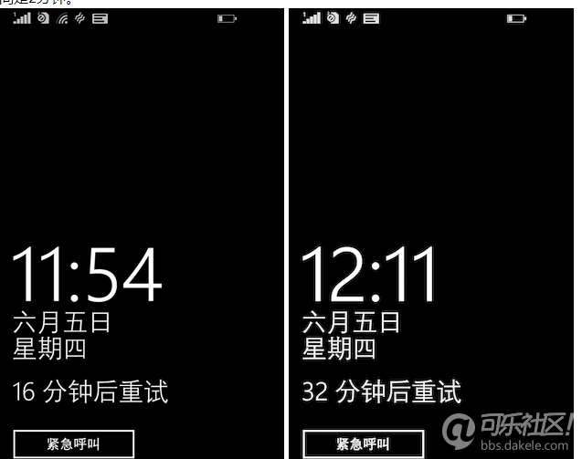 输入错误则停用的时间也在递增第一次测试中,笔者连续输入错误6次密码,手机被锁定1分钟。而之后的每一次测试中只要输入错误1次手机便被锁定,而锁定时间的间隔也并非均一,不过似乎没有什么可循的规律。
