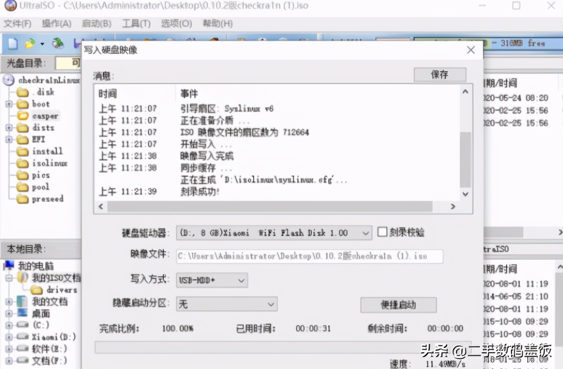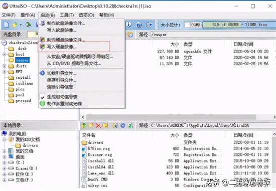2.在UltralSO菜单选择【启动】-【写入硬盘映像】开始制作U盘工具,点击写入,等待完成即可。(懂装机的朋友应该非常了解)