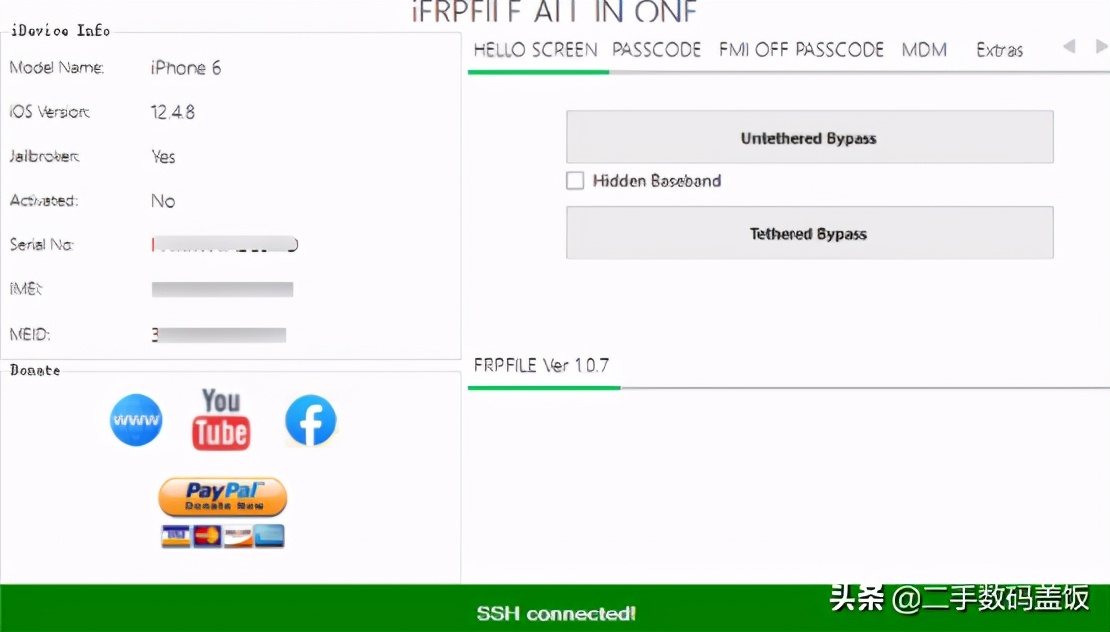 昨天晚上的时候数码盖饭(shumagaifan)已经在朋友圈预告了一款绕ID的软件,是在Windows环境下的软件,它支持iOS 12.5.1到iOS 14.5,堪称一个多功能4合一的完美绕ID工具,建议在Windows10环境下使用。(测试在Windows XP及 Windows 7下面运行偶尔报错)