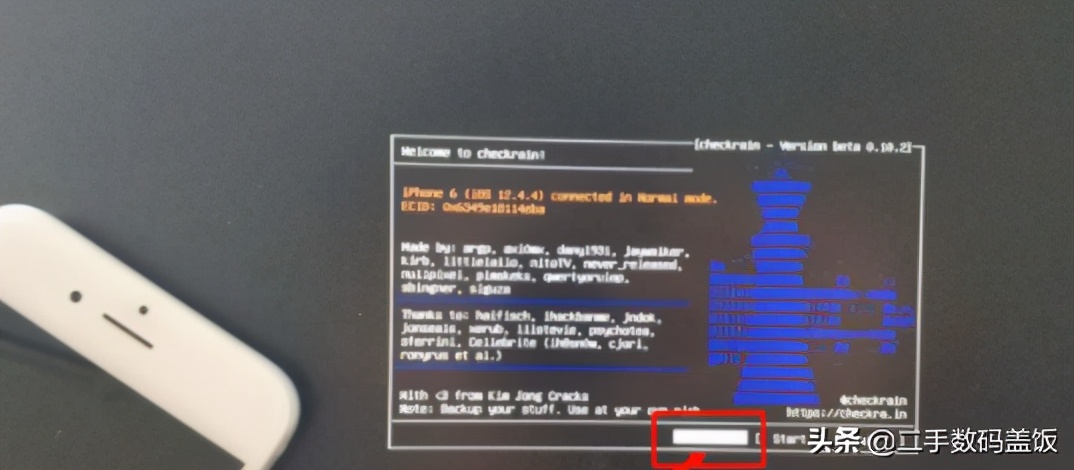 3.点击enter之后,电脑会跑一段代码,然后就会进入大家熟悉的checkra1n越狱环节,这个环节比较重要,将手机进入DFU模式,然后和Mac越狱一样,按要求按住不同按键,释放不同按键。(越狱环节有图片提示,先一起按住电源键+home键,在释放电源键,反正就是要找他的提示操作,不懂的可以详细看看Mac版本越狱)