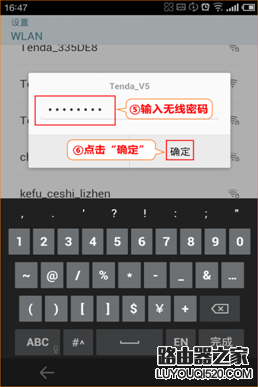 启用Wi-Fi功能后,选择无线路由器信号的名称连接,输入无线密码确定即可:
