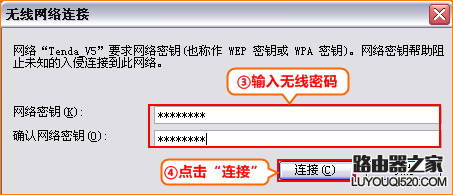 (无线信号名称),点击”无线设置–无线安全”-查看无线安全密钥(第一次连接无线信号需要输入的密码)。