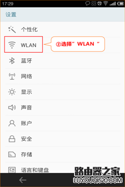 打开智能手机“系统设置”菜单-点击“WLAN” :