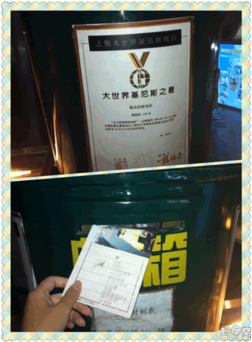 就在这一层有着世界上最高的邮局(听说中国人最爱弄基尼斯之最了),在这里我邮走了在七里山塘写的明信片。(之前攻略就知道这有邮局的)走过一圈乘电梯到90米处的下球体,出了电梯门有很多游乐设施,出了游艺厅往右走,大概20米的左手边看到一条楼梯,从那走下去,有一个最高的室内过山车,老妈就不尝试了,我坐了两回,好爽。
