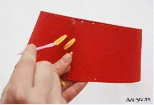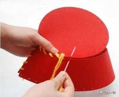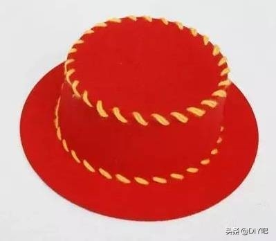 用不织布剪一个空心圆作为帽檐。将帽檐放置帽身的下面,再用锁边的方法进行缝制
