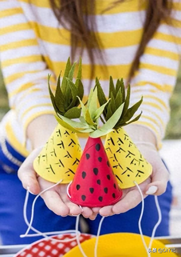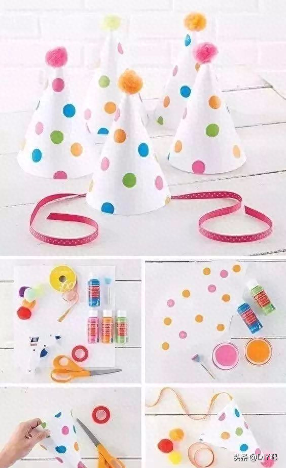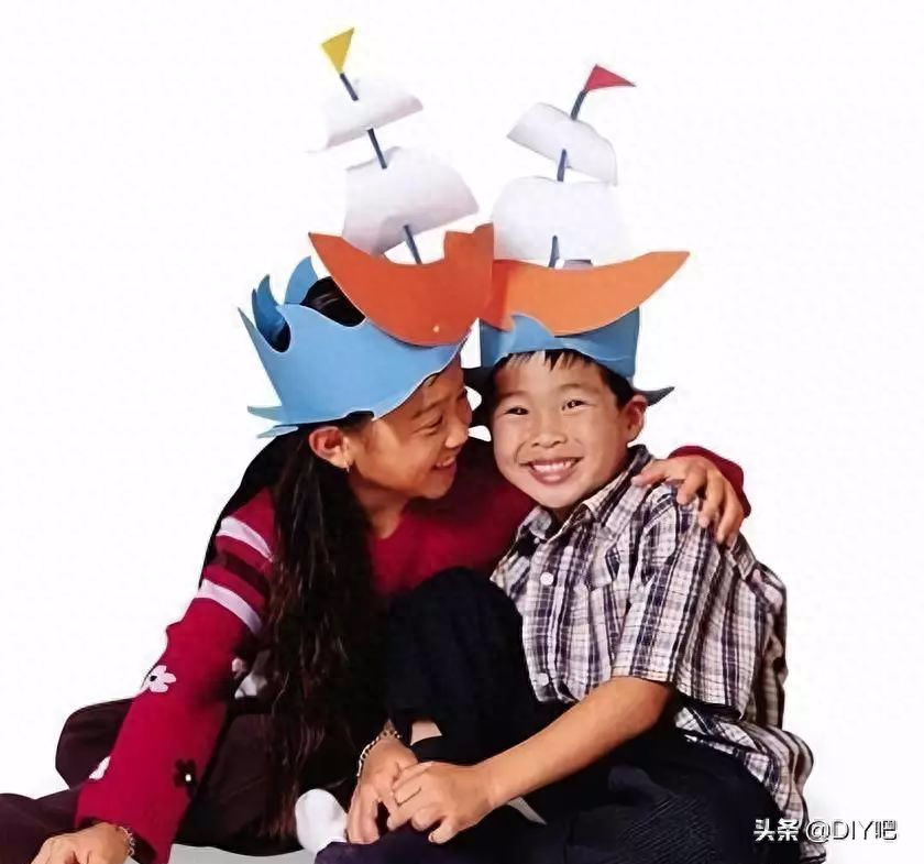 最后完成的瓦楞纸帽子,快给小朋友戴上试试吧!