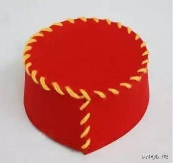 用剩余的不织布剪一个圆圆的形状作为帽顶。将帽顶放在帽身的上面,用锁边的方法进行缝制