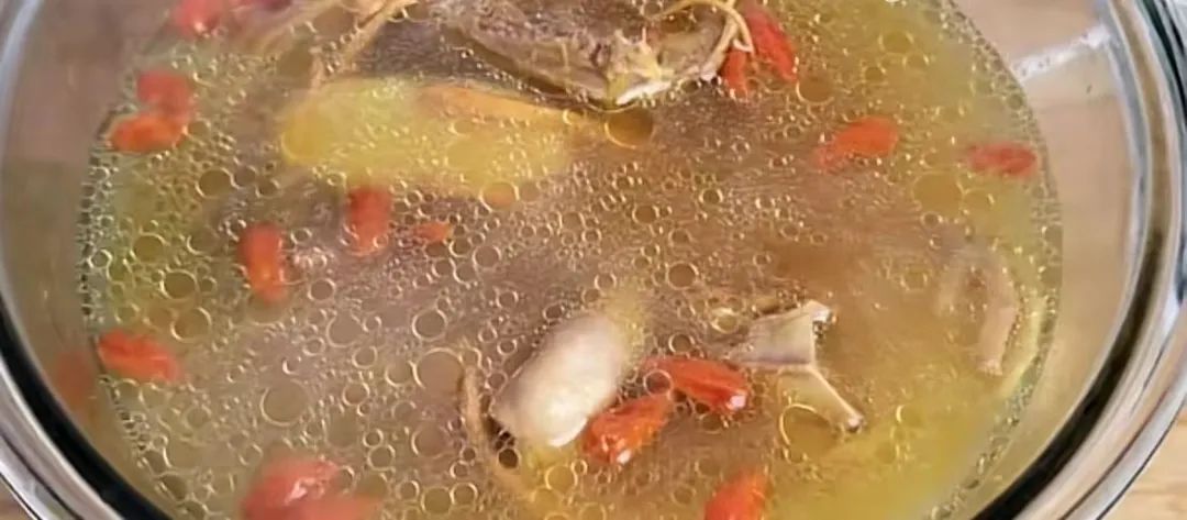 ,你也可以选择人参或者其他的温补食材。再来准备一节山药,削掉外皮,将它切成滚刀块。舌苔紫后将葱姐给挑掉。加入三样,喜欢吃脆的可以等一下再加。再加入红枣。加入葱草花。将表面多余的浮沫给打掉。用
