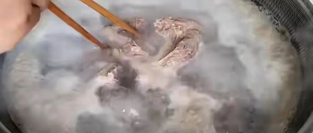 左右,锅里的浮沫渐渐往旁边走的时候,将郭子肉在锅里摆几下,然后捞出来,这样可以去掉它表面的浮沫,也不用洗,