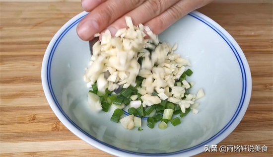 第七步:把葱切葱花,蒜切成末,全部切好放碗里备用。