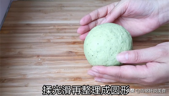 第四步:然后用手揉成面团,多揉一下,把它揉成偏软一点的光滑面团,再把它整理成圆形。