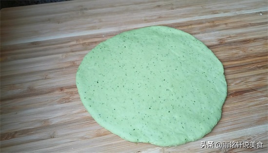 第五步:用擀面杖把面团擀成一厘米厚的圆形薄饼。