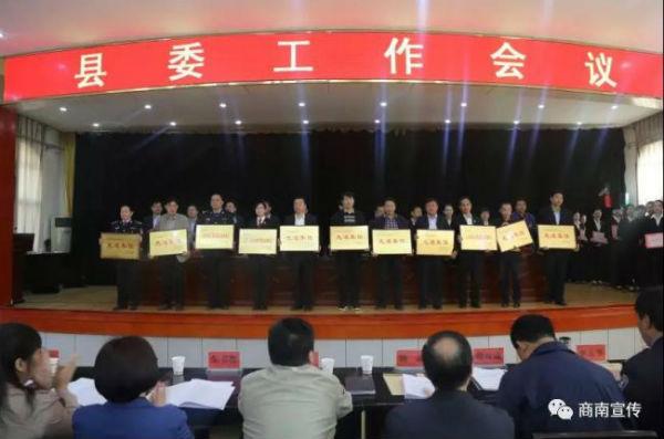 会上,县委副书记杨长江宣读了2017年度县委工作先进集体和先进个人表彰决定,举行了颁奖仪式;县委常委、统战部长、城关街道办党工委书记汪裕仓,县委常委、组织部长彭书旺,县委常委、宣传部长董建莉,县委常委、政法委书记朱波分别对全县统战、组织、宣传、政法及各自分管工作进行了全面安排部署;随后,县委、县政府与镇办、部门签订了2018年度相关工作目标责任书。许水兆就贯彻落实会议精神作了讲话,崔华锋就贯彻会议精神提出了具体要求。