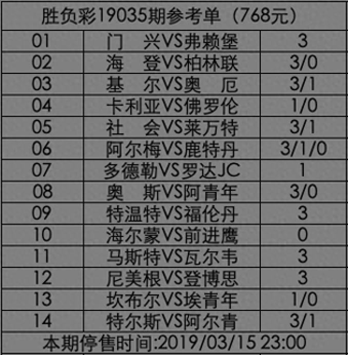 2019年3月15日唯彩看球-红单达人-姜山冷门专栏为大家带来19035期14场胜负彩预测,详情见下文: