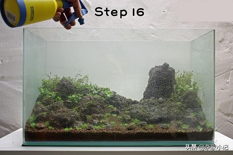 一个重要的步骤,在种植完水草后,要用喷水器给整个缸内均匀的喷水,及时的补水可以防止植物脱水,也可以固定你的作品