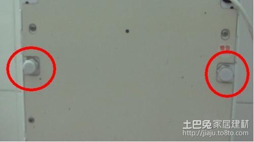 3、之后,我们到饮水机的背面,查找有没有如下图所示的螺丝,我家的饮水机有两个,别的饮水机可能只有一个,可能和我家这个不一样,请根据实际机子来操作,我们把这个螺丝扭开,塑料的很容易扭开的,把它们放好,不要不小心弄丢了,最后我们洗完还要装上去的。