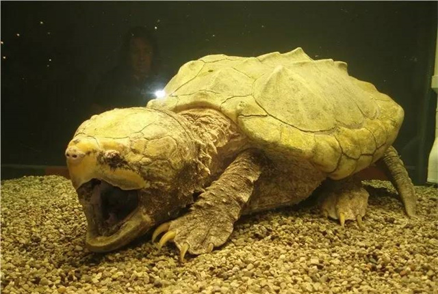 短吻鳄龟的体型非常大,一只成年的短吻鳄龟,龟壳能有