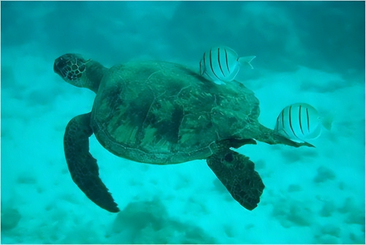 也正因为经常吃这些绿色植物,他们的外表才逐渐开始显现出绿色,从而被人们叫做绿海龟。而红海龟则比绿海龟还要大,它们体长在两米左右,体重更是可以达到