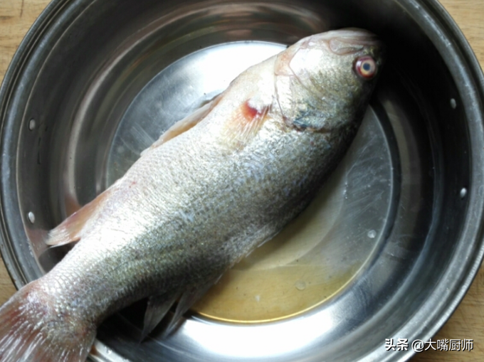 1、买一条鲈鱼,想要鱼肉鲜嫩,大小很重要,一斤半左右的最好,体长在30~40厘米,太大太小都不好。把鲈鱼宰杀干净,去掉鱼鳞、鱼鳃、内脏、黑膜、鱼血、鱼鳍,冲洗干净。很多人都没处理鱼鳍吧,鱼鳍上有很多细菌、脏东西,用剪刀剪掉。