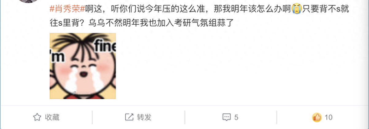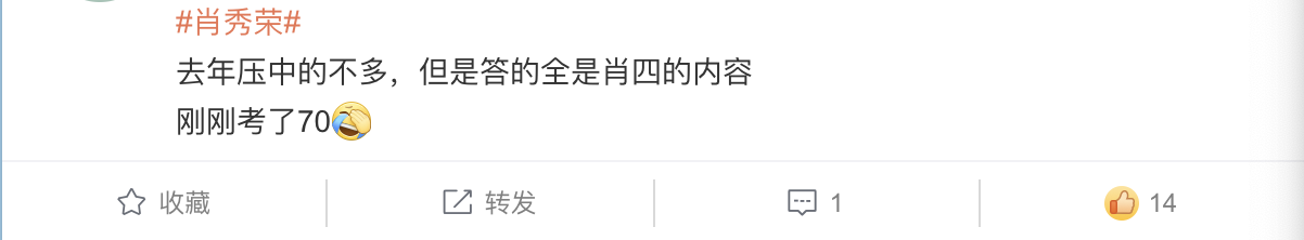 考生们一时间也热泪盈眶,几乎都在含泪感谢他们的肖秀荣大大……