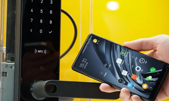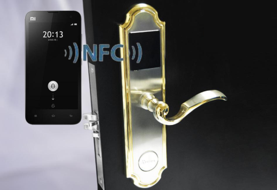 充当智能门锁的钥匙,一碰即开,再也不用带钥匙,由于NFC的安全性级别特别高,也不用担心被破解。