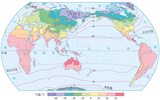 全球1月等温线分布图