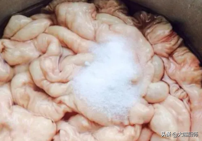 猪大肠有粘液、腥臭味,用盐是没用的,既洗不掉粘液,也无法去腥。