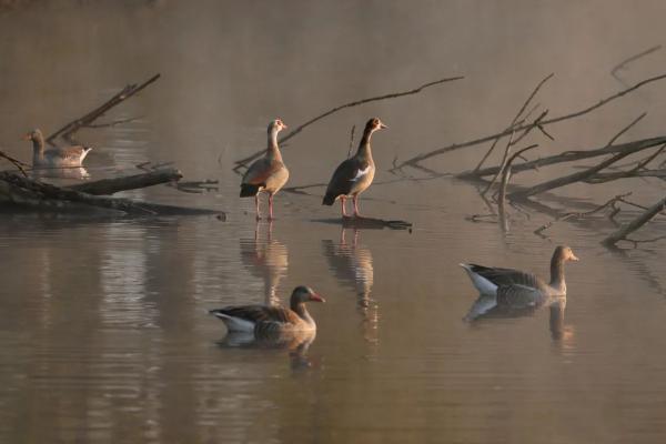 这个描述,与我国白额雁的相貌非常相似:白额雁的背部、颈、尾处的羽毛棕黑,与“乌”的羽色相近,它们的嘴基与前额都有白色的横纹,脚蹼也呈淡红色。仿佛和精卫鸟是一个模子刻出来的“姊妹”。
