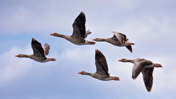 古代就有大雁飞行时会衔树枝或者芦苇的说法,在崔豹的《古今注》中写到:雁自河北渡江南,瘦瘠能高飞,不畏缯缴,江南沃饶,每至还河北,体肥不能高飞,恐为虞人所获,尝衔长芦可数寸,以防缯缴。”