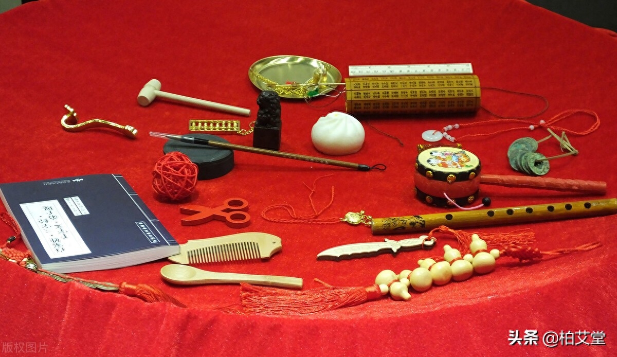 抓周的时候,除了帮宝宝换上新衣服之外,当然最重要的就是抓周的东西准备了。通常来说,大概有以下几种: