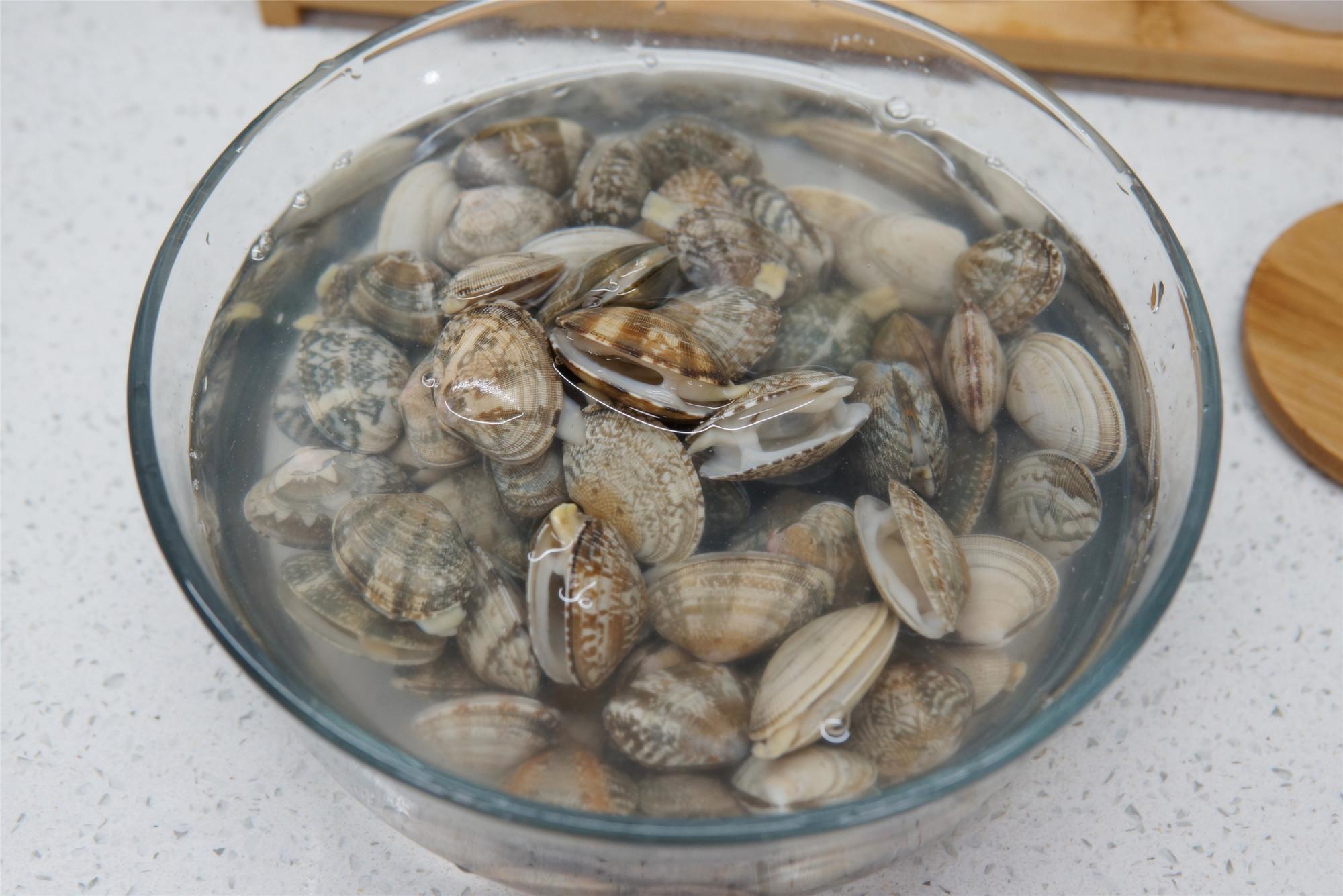 1、一般现在购买的花甲都是吐沙干净的,如果还需要给花甲吐沙,最快速方便的办法用温水浸泡花甲10分钟,然后晃动盆中的花甲,即可快速清除沙子。
