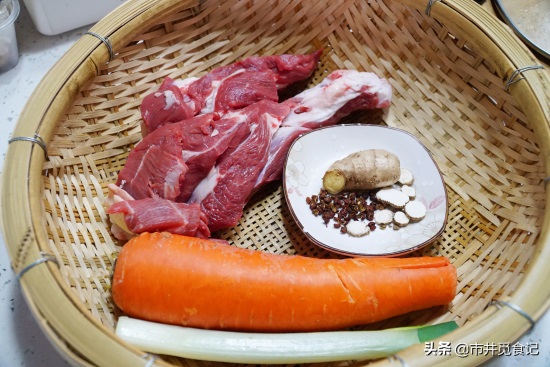 准备食材:羊肉一斤半,胡萝卜一根,姜一块,白芷5克,花椒5克,小葱3根,盐适量。