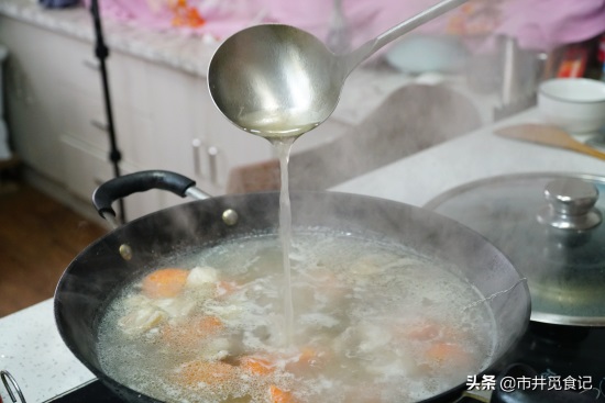 4、炖煮的过程中,用勺子频繁的扬起羊肉汤,也是减少膻味的一种很好的办法。