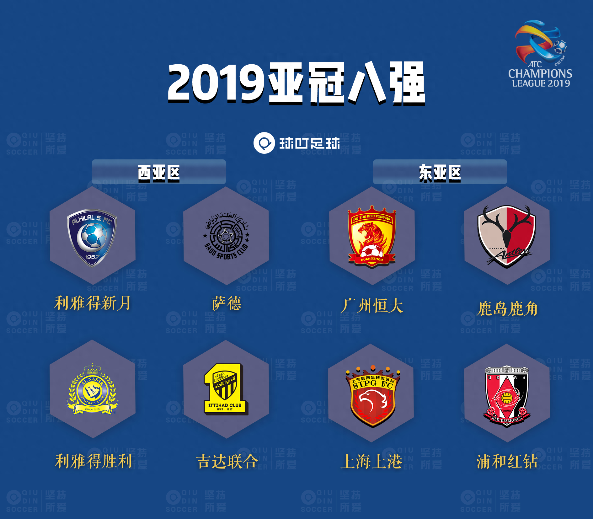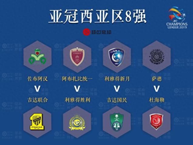 随着利雅得新月和吉达国民这场亚冠沙特德比以前者总比分4-3晋级结束,2019年亚冠联赛1/8决赛正式落下帷幕,亚冠8强全部出炉,西亚区方面,沙特3队「围剿」来自卡塔尔的萨德,东亚区方面,中国和日本各占2席。