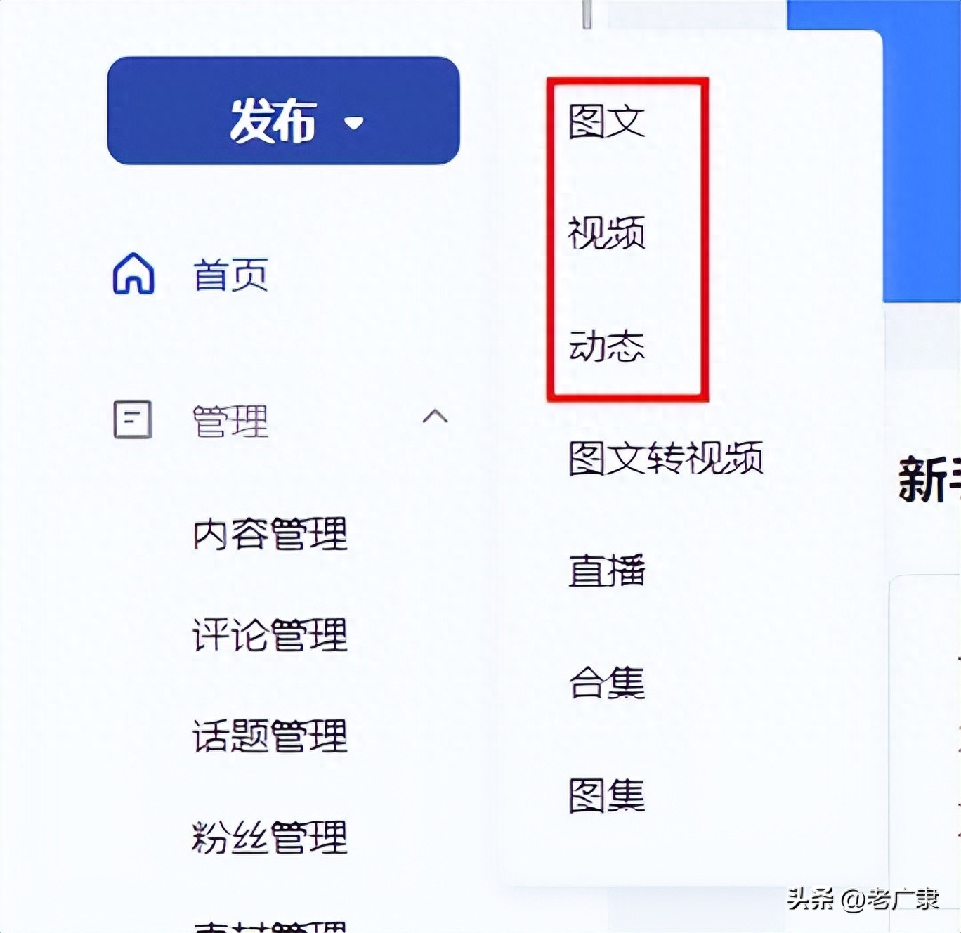 视频:视频可以分为横版视频和竖版视频,竖版视频也就是百家号后台中的小视频。横版视频会同步至好看视频;竖版视频会同步至度小视,也就是以前的全民小视频。