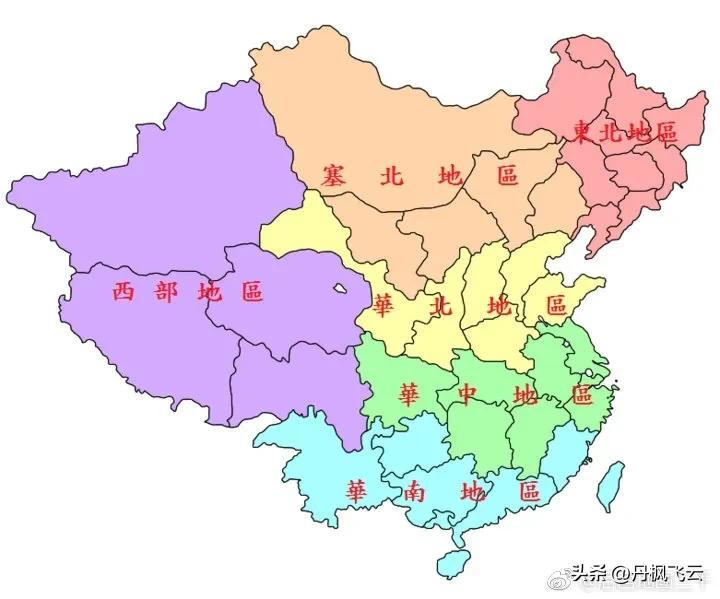 民国时期中国分为六大地理区(参考维基):