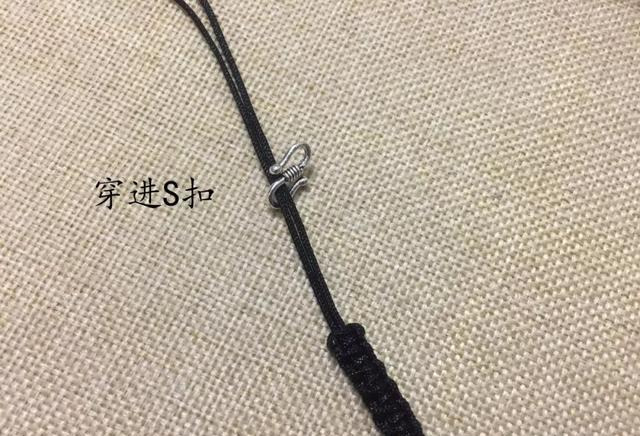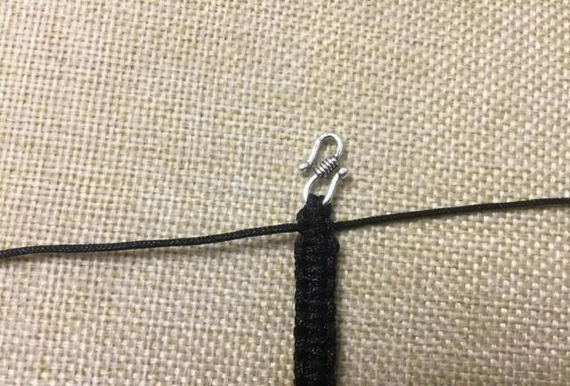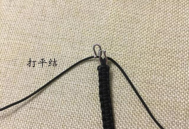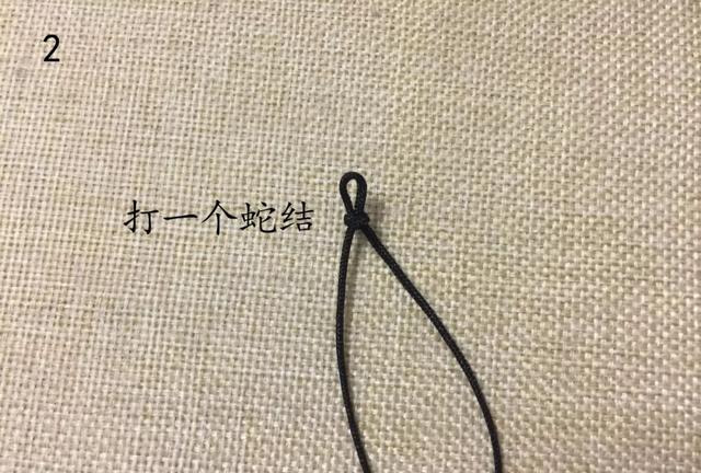 第三步,80厘米的这根短线对折先打一个蛇结做扣眼。