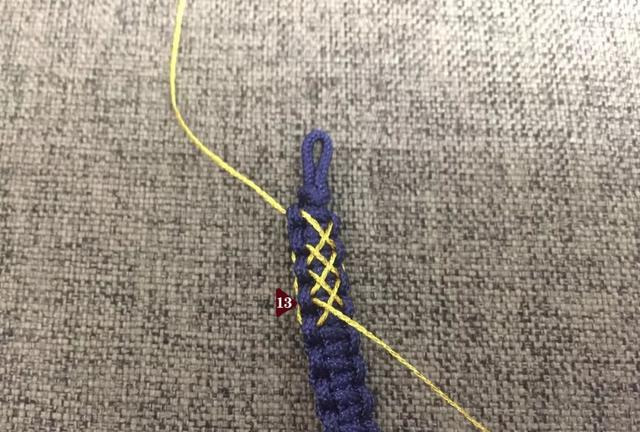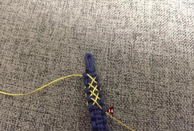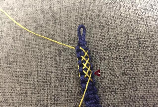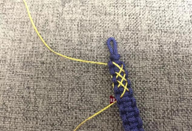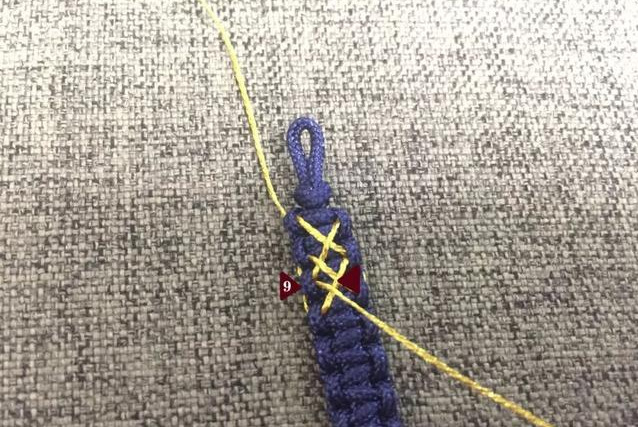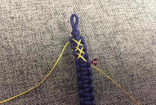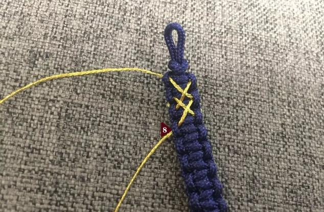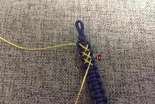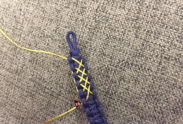 通过前面步骤,我们看到它线的走向规律,有点像我们以前绣的十字绣感觉。就这样一直绣下去,绣满所有平结的部分。