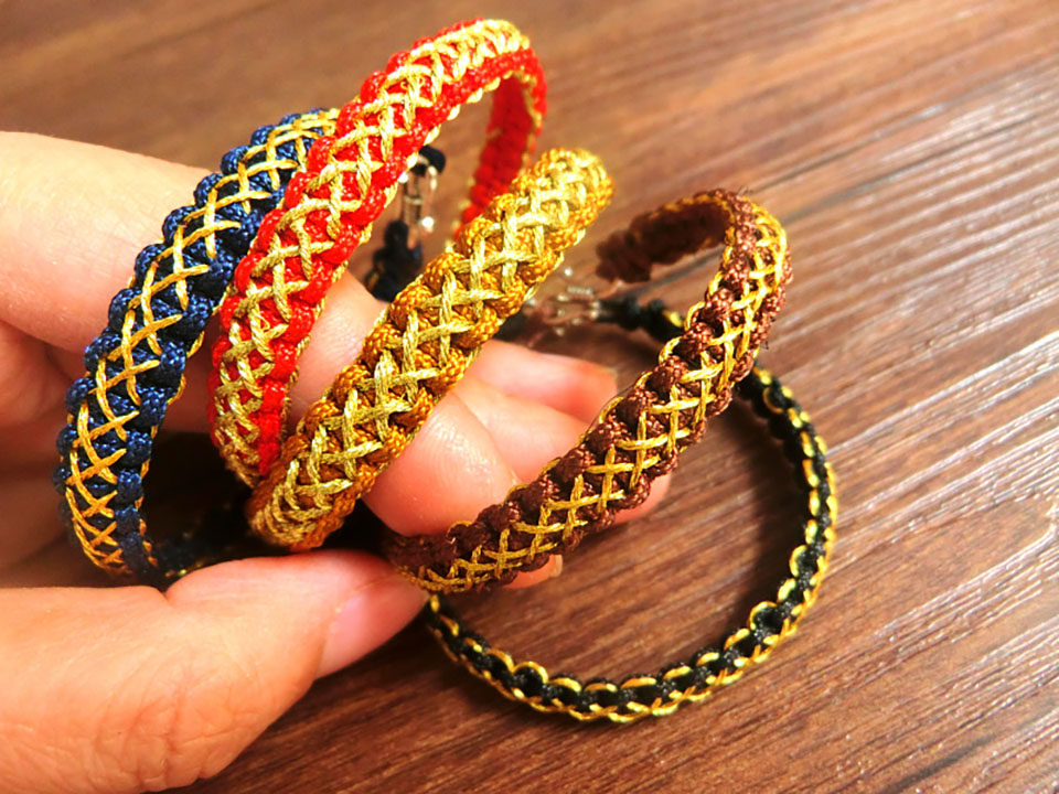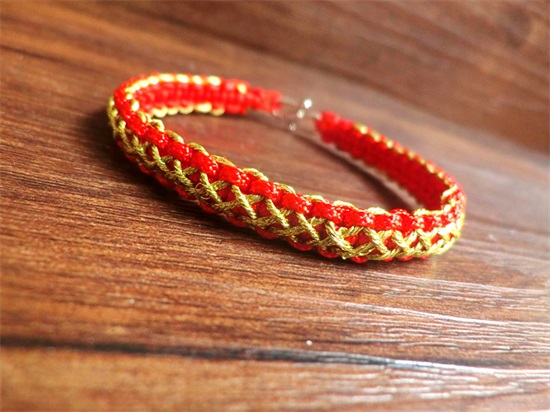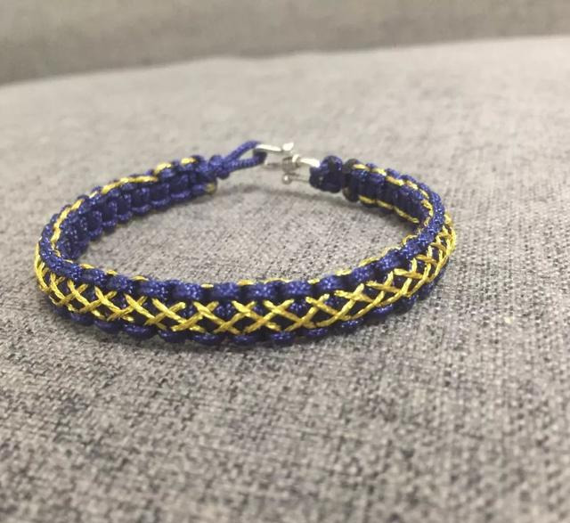 今天来教大家这款手绳,手链结法是双向平结,配合金线秀十字。双向平结因型方正平实,常象征富贵平安、四平八稳、平步青云。
