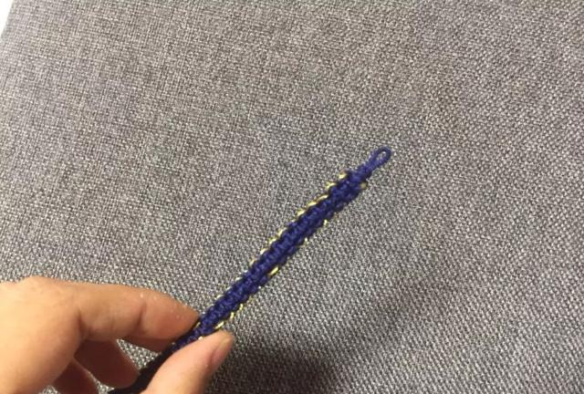 第六步,加上扣圈部分,一共编织长度是贴手围的长度,因为后面还要加扣子,编织净手围长度加上后面扣子的长度正好合适。