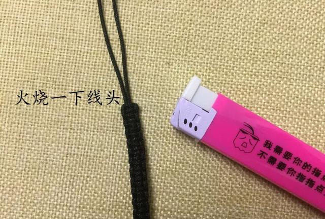 第八步,用打火机烧下线头,烧化后用手按压下。