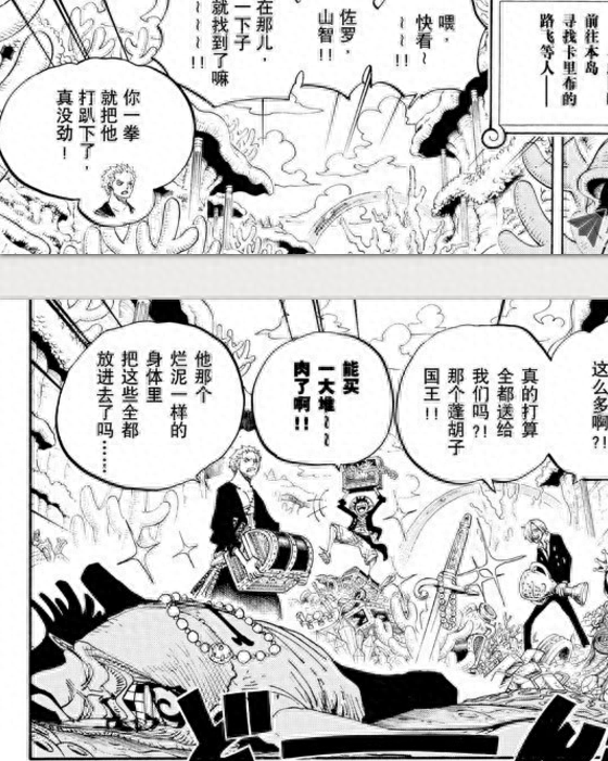 娜美在一旁嗅到了金钱的味道,于是派三大主力去找被打飞的卡里布。