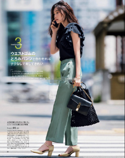 今夏非常流行的荷叶袖衬衫搭配阔腿裤,显瘦显长还时尚。上身衬衫选用荷叶袖设计,层层叠叠在袖口,非常甜美可爱。