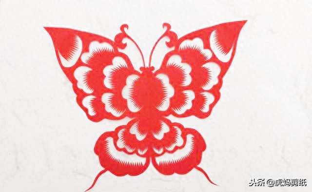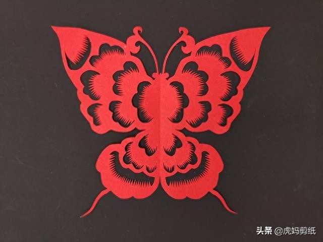 在民间剪纸艺术创作中,蝴蝶有着千姿百态,只要把握好外形,一只活灵活现的蝴蝶就诞生了,这样的剪纸图案并不复杂,喜欢的小伙伴可以尝试着剪剪看。