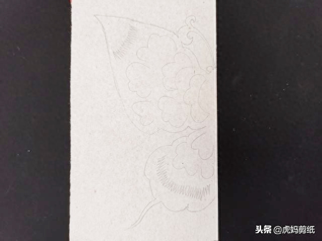 上图是底稿,小伙伴可以照着画,翅膀上的图案是花瓣样的锯齿纹,整体好似一朵大的牡丹花。在外形上,对翅膀的外轮廓进行了简单的修改,将圆滑的弧线剪成了波纹状。