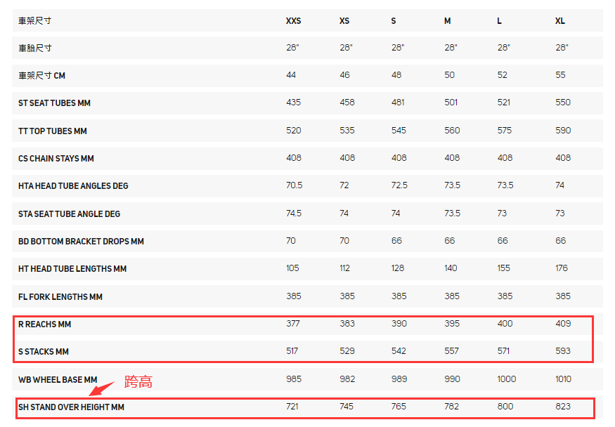 reach值和stack值大概相同时,斯特拉的跨高要求更高,所以斯特拉的几何更加激进,要求你的腿更长哦。