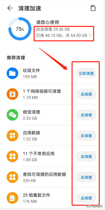 手机使用久了,垃圾文件会逐渐增多。大部分手机厂商都考虑到了这个问题,手机自带就有清理垃圾文件的功能。以我的华为Mate 20手机为例,在手机管家APP里就有清理加速功能。步骤如下: