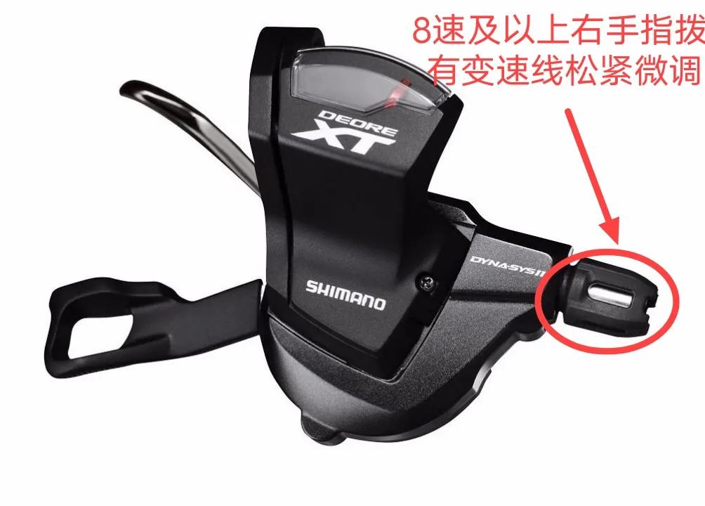 一般8速及以上级别右手指拨有变速线松紧微调旋钮,用法跟后拨上的旋钮一样不再赘述。