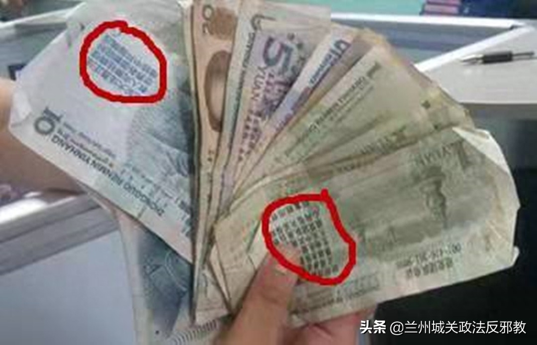 邪教组织借助人民币为载体,传播具有反动政治内容的宣传品。