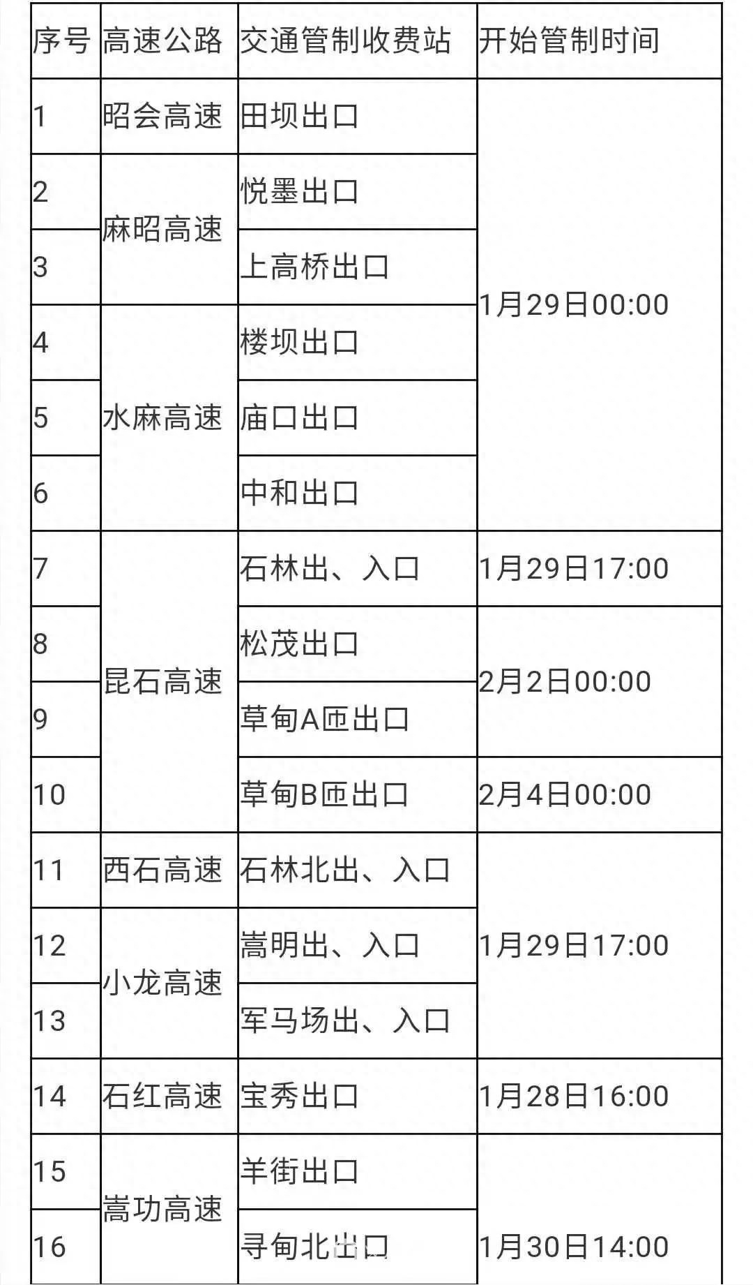 最新!楚雄人请注意,云南全省高速公路收费站交通管制信息看这里